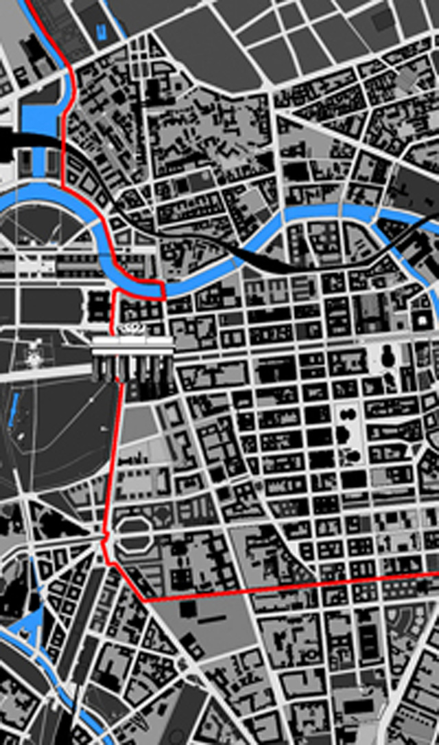 Image 9: “Plan for the “New Berlin” 1997. Map of Berlin with demarcation of Wall.” Copyright Senatsverwaltung für Stadtentwicklung Berlin, 1997.