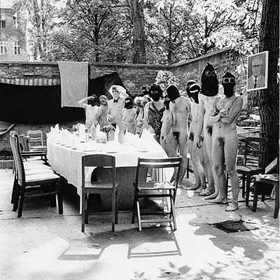 In another example from the Mainzer Strasse, squatters mocked the legacy of the West German left by holding a dinner party at which the attendees, most completely naked save for their ski masks, sat down for coffee and cake at the famous table from the late 1960s Kommune I in West Berlin, which they had previously stolen from the offices of the tageszeitung.[5] In a flyer announcing the fact that the table was stolen, entitled “Be wild and do awesome things!” and signed by the “Central Committee of the Roving Hash Rebels,” they wrote: “This table is a social-revolutionary relic and has for a long time had no business being with you. You have nothing to do with social or revolution” (Zentralrat der umherschweifende HaschrebellInnen). The editors of the tageszeitung promptly responded in an article with the comparatively underwhelming title “Give the table back!” in which they angrily wrote: “The table has served the antiauthoritarian and leftist movements over the past twenty-one years ten times more than it will a group of West-squatters in an East Berlin house” (“Gebt den Tisch zurück!”). The editors of the tageszeitung, it seems, were clearly not in on the joke.