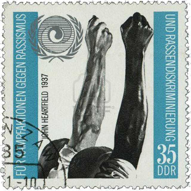 GDR stamp illustrating allegiance to a global fight against racism incorporating a drawing by John Heartfield © 123RF (IMAGE 17) – Click Image to Continue